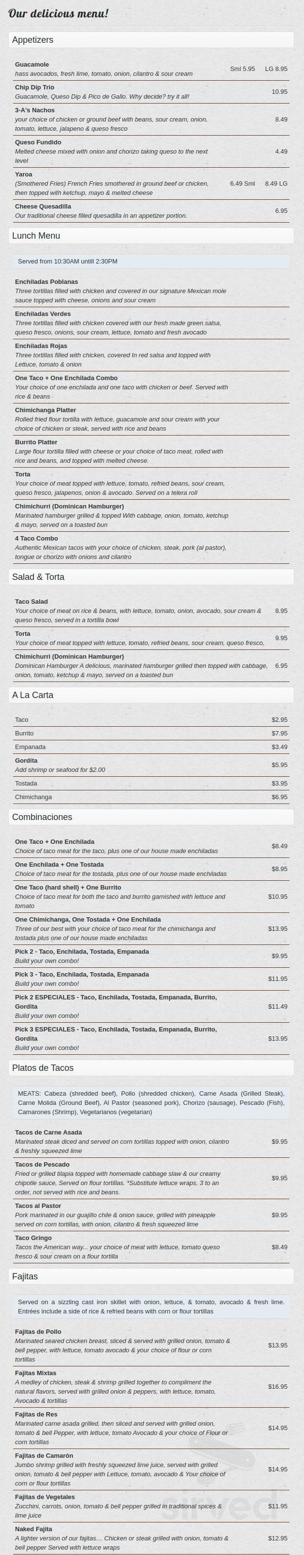 Online Menu Of Three Amigos Mexican Restaurant And Cantina Restaurant Charlotte North Carolina 28205 Zmenu
